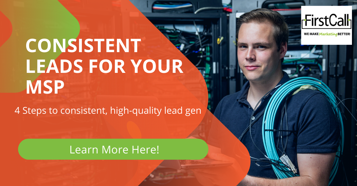 Think about your specialties, your expertise and leverage that.  Here at First Call Digital Agency, our expertise is in lead generation for MSP companies.  We have honed this process and help our clients continuously fill that sales funnel.